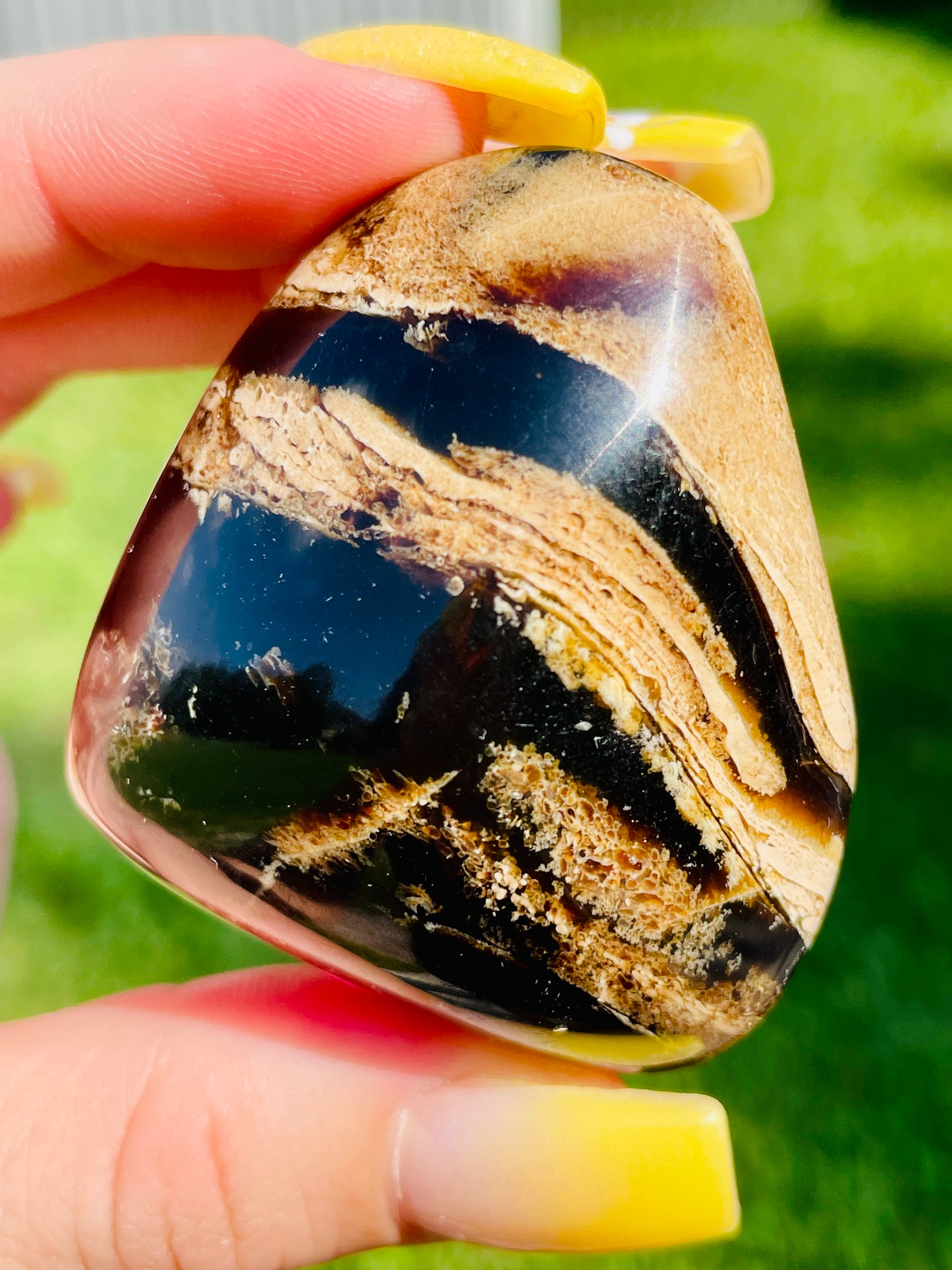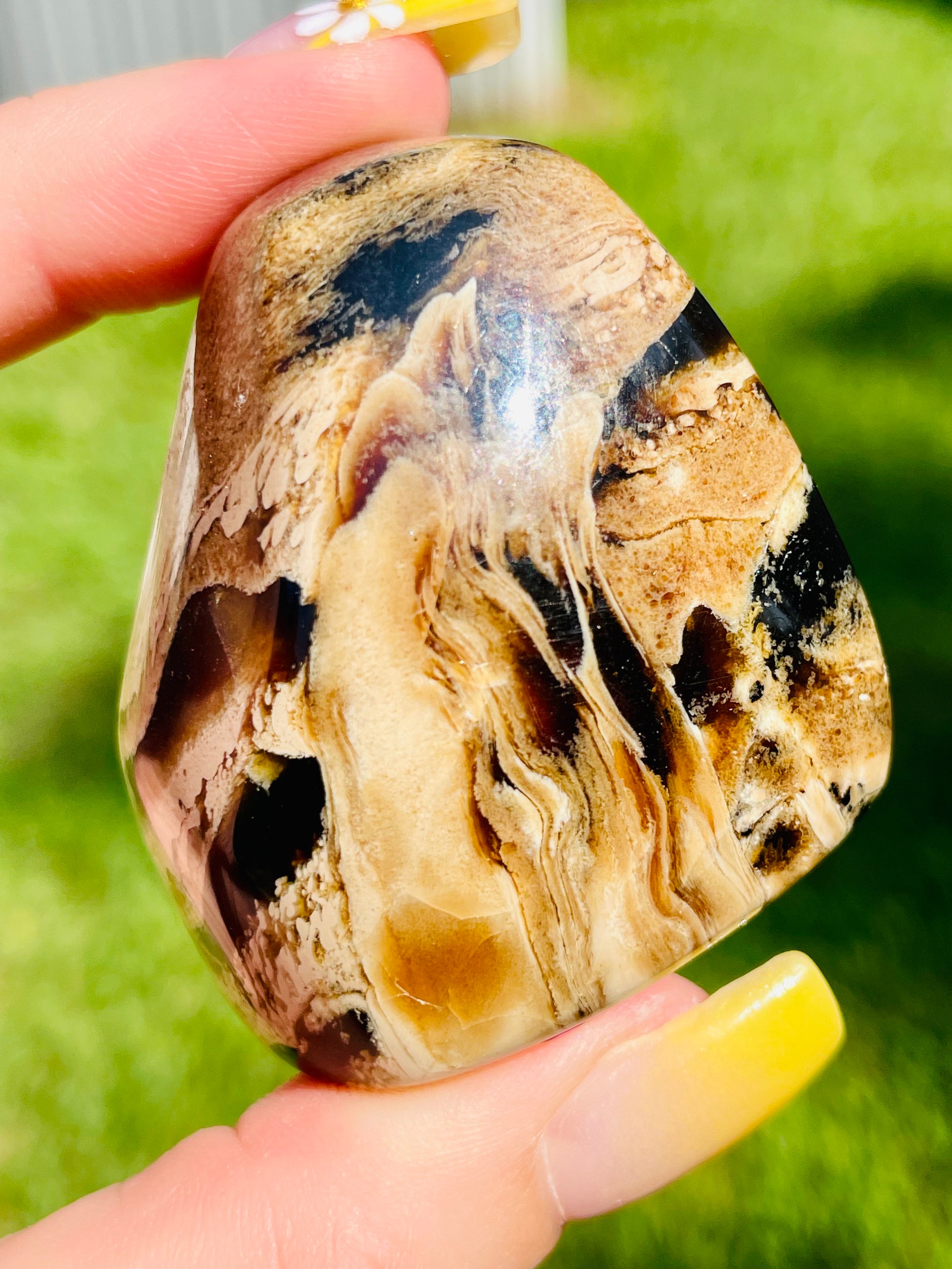 Features: creamy cascades with dark chocolate & gold-colored amber