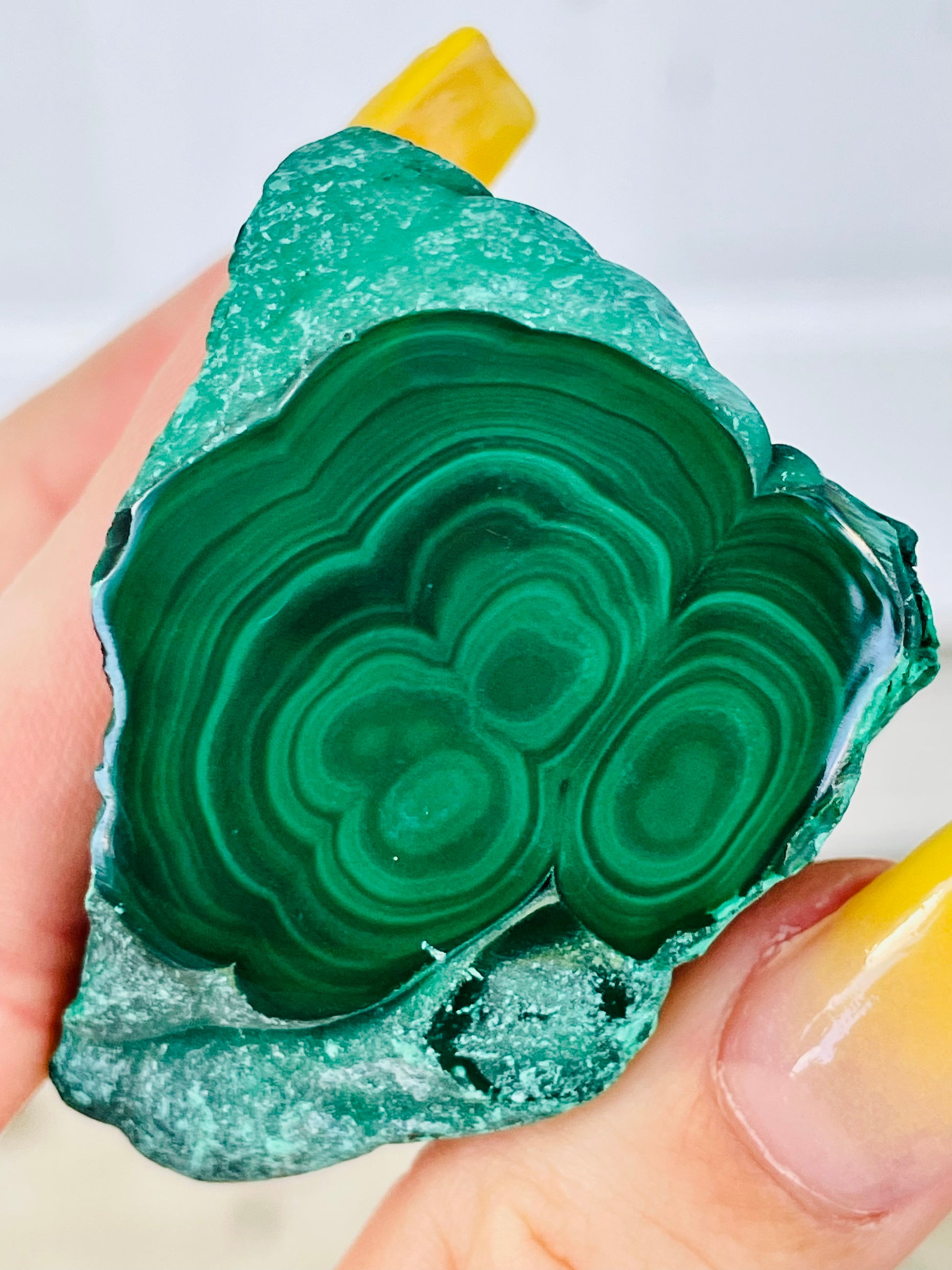 Gorgeous boytroydial malachite double-sided eyes and raw druzy matrix