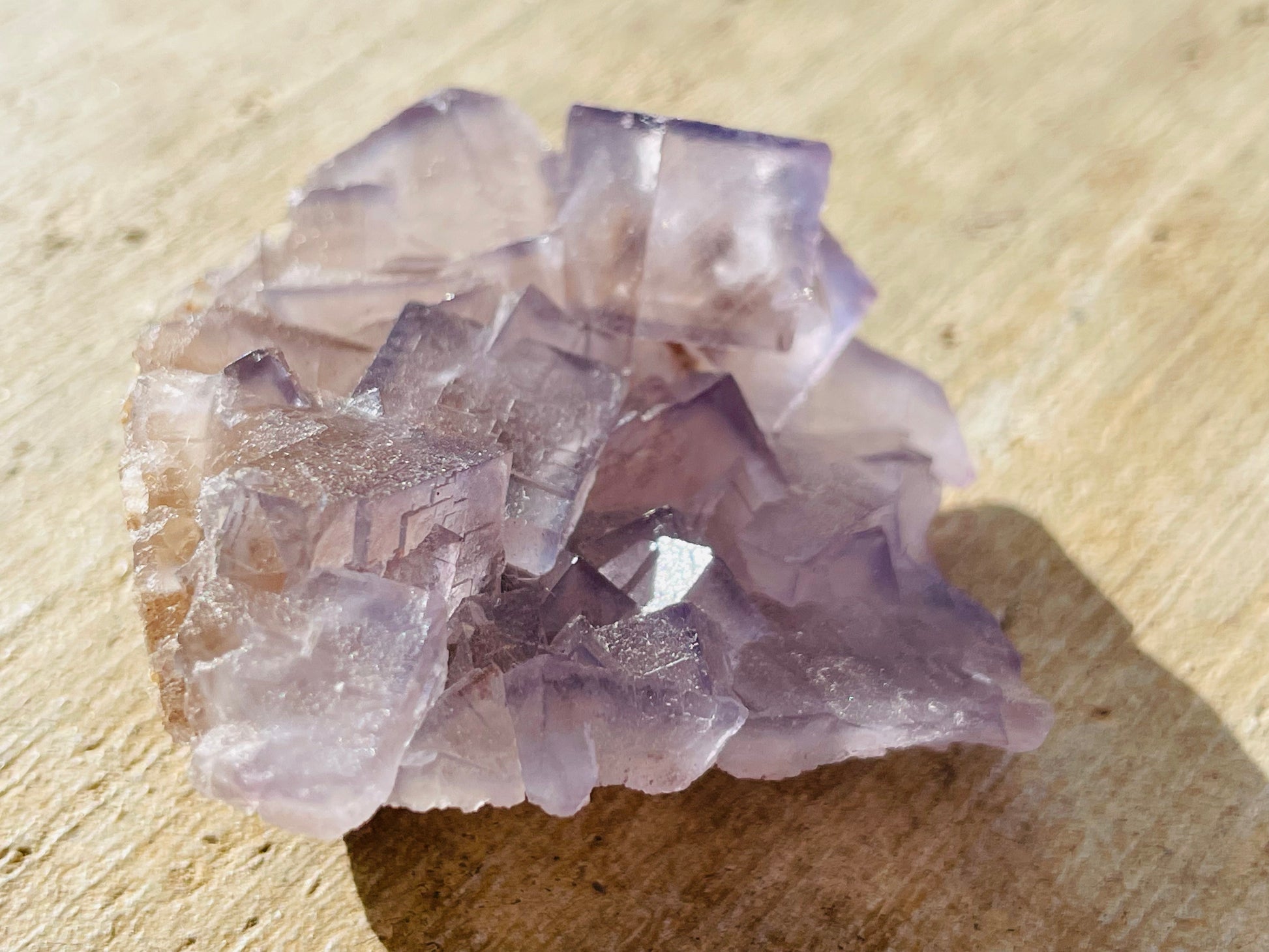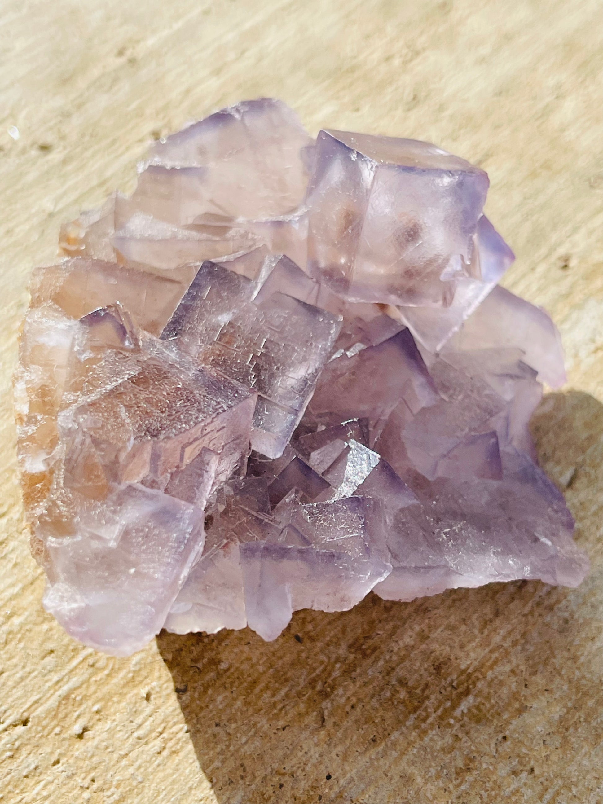 Features: lavender and dark purple fluorite with dark purple etching