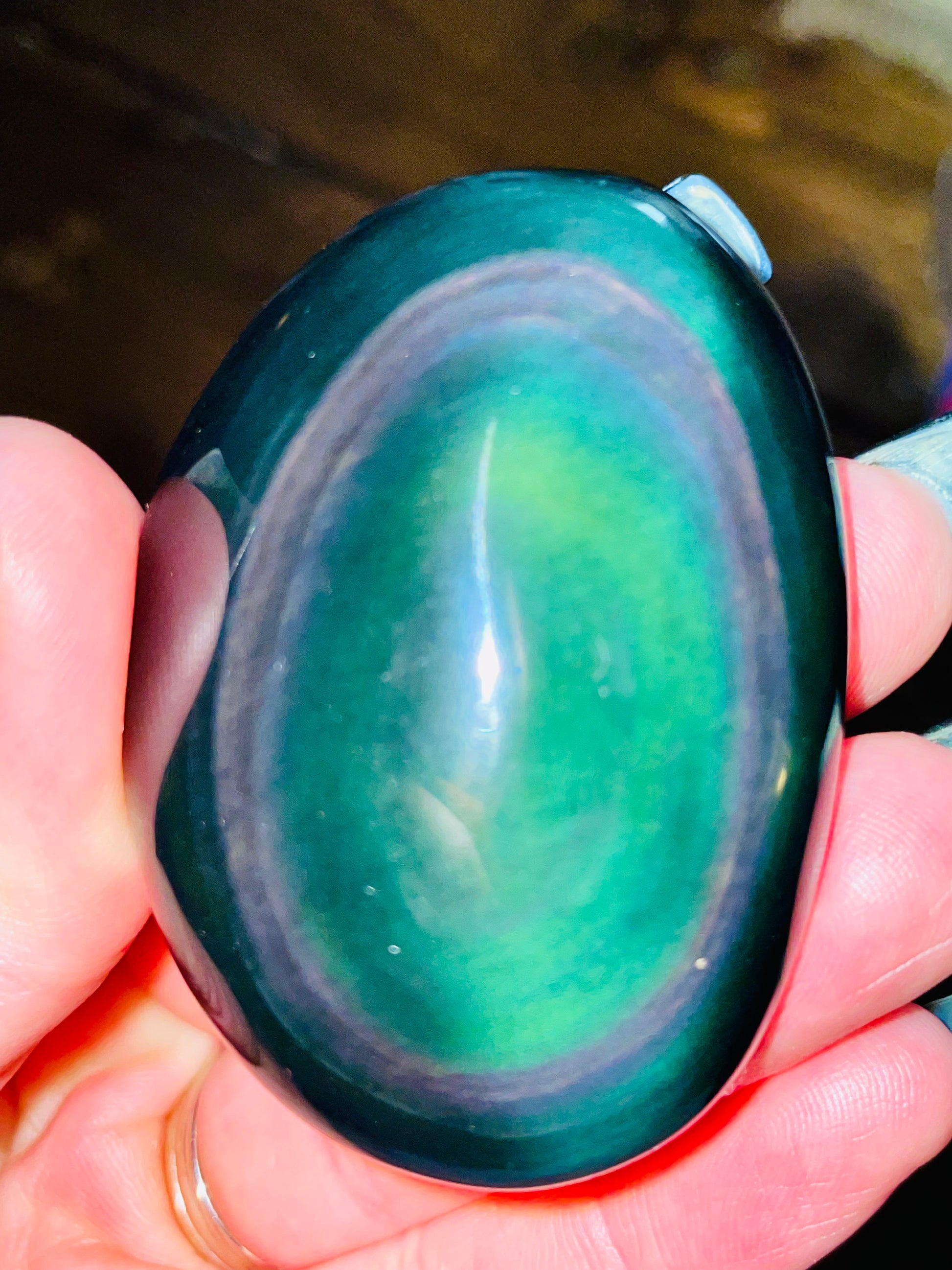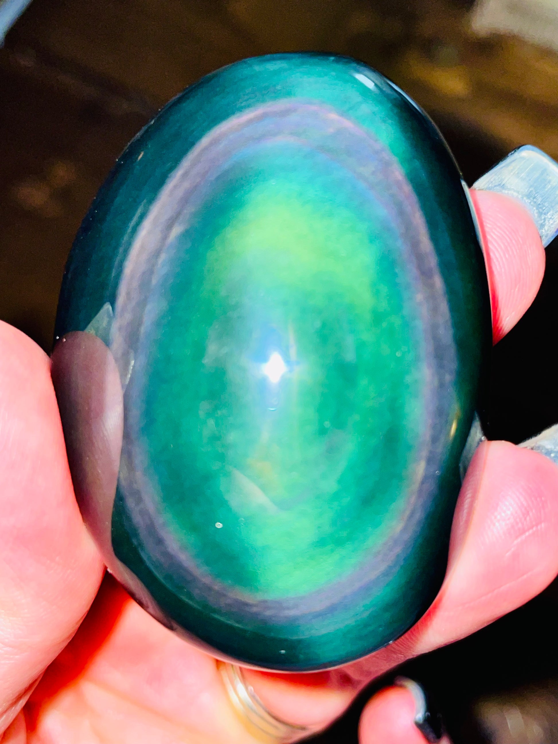 Galactic Pastel Rainbow Obsidian Palmstone - Medium